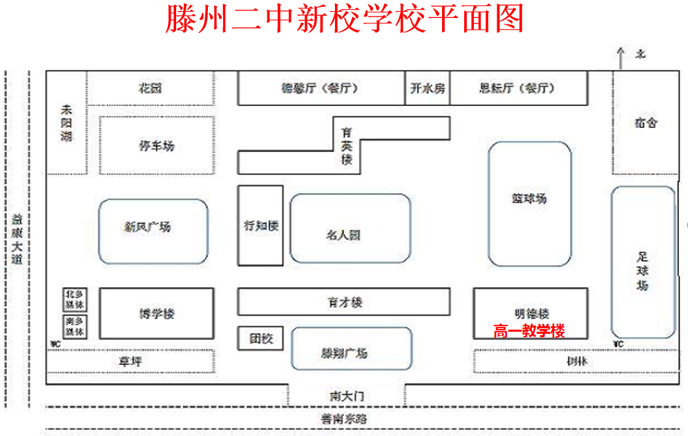 三、查询分班结果后,可根据《滕州二中新校平面图、高一教室分布图》查找相应班级位置。