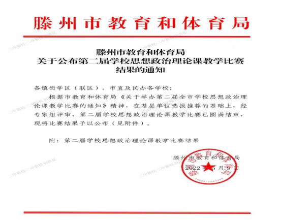 【喜报】我校教师在滕州市第二届学校思想政治理论课教学比赛中创佳绩